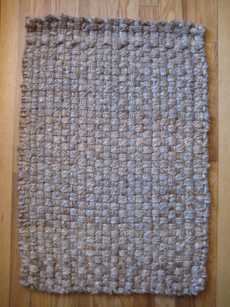 Handwoven in India, this rug is made from 100% jute. Please inquire about other sizes if interested.