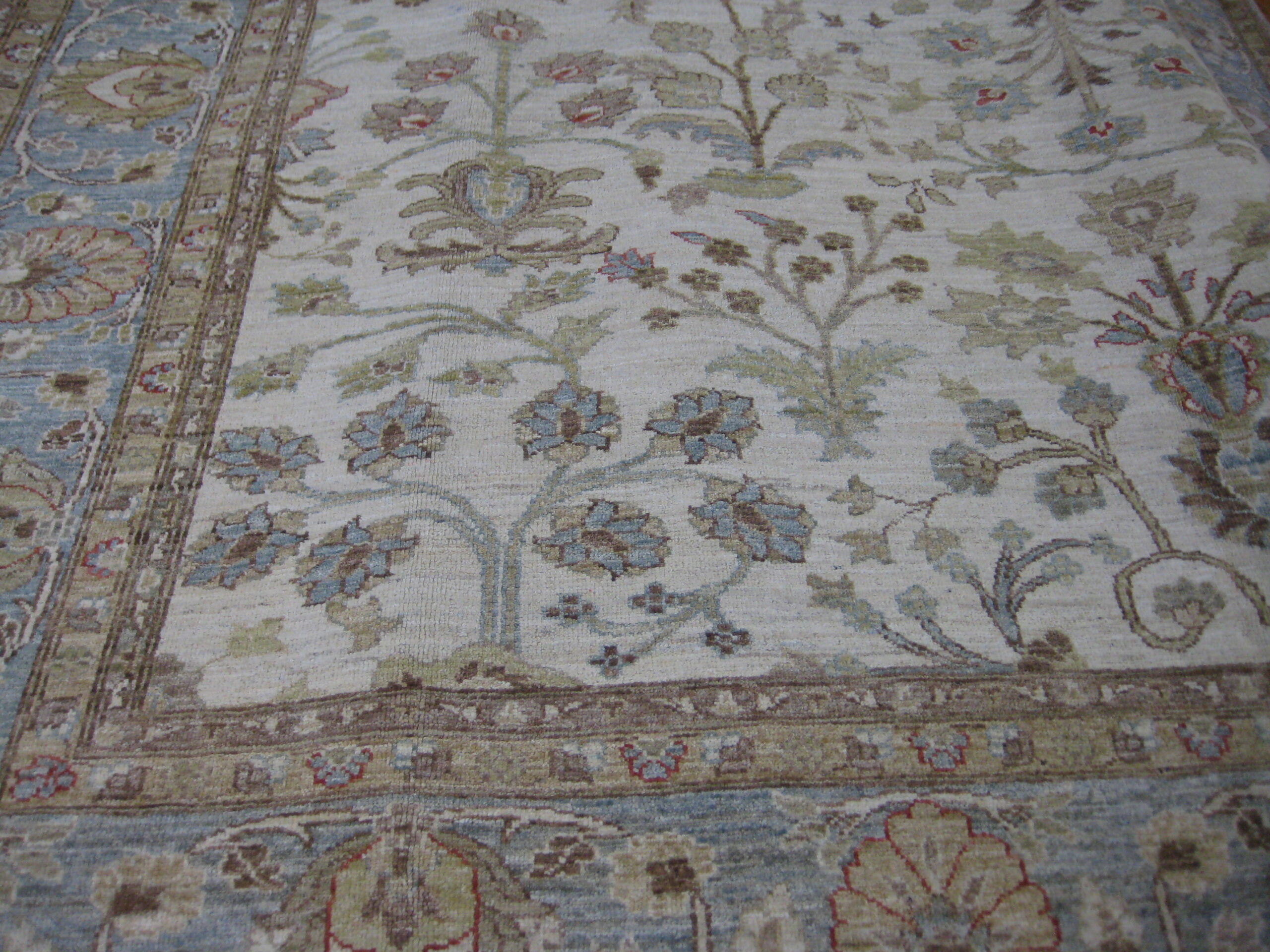 Hand-knotted in Pakistan. Transitional rug.